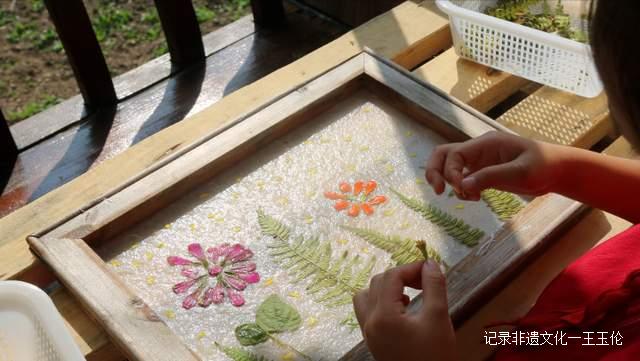 制作花草纸并在上面制作自己喜欢的图案,用树叶、用花朵勾勒出形状,万千植物、形态各异,构成了一张张美丽的图画,青曼非遗研学基地