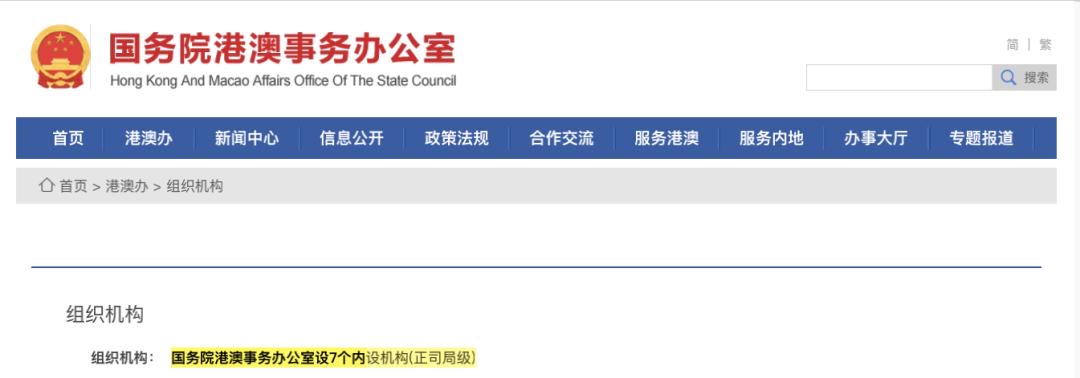 国务院港澳事务办公室官网更新,内设机构(正司局级)由7个变为9个,新增宣传司和安全事务司。