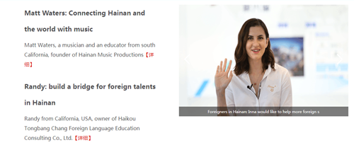 《外国人在海南》(Foreigners in Hainan)专栏页面