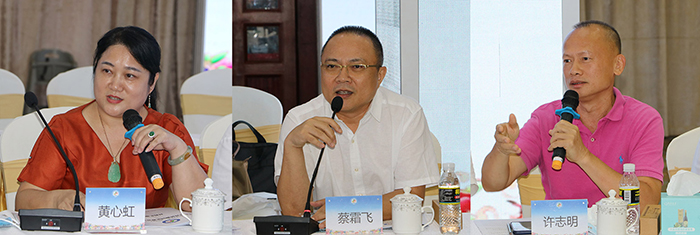 海南省侨商会执行会长李桂英、唐丽英、赵思远等积极建言献策(从左到右)