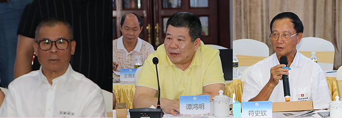 海南省侨商会执行会长张留兴、常务副会长谭鸿明,副会长符史钦交流发言(从左到右)