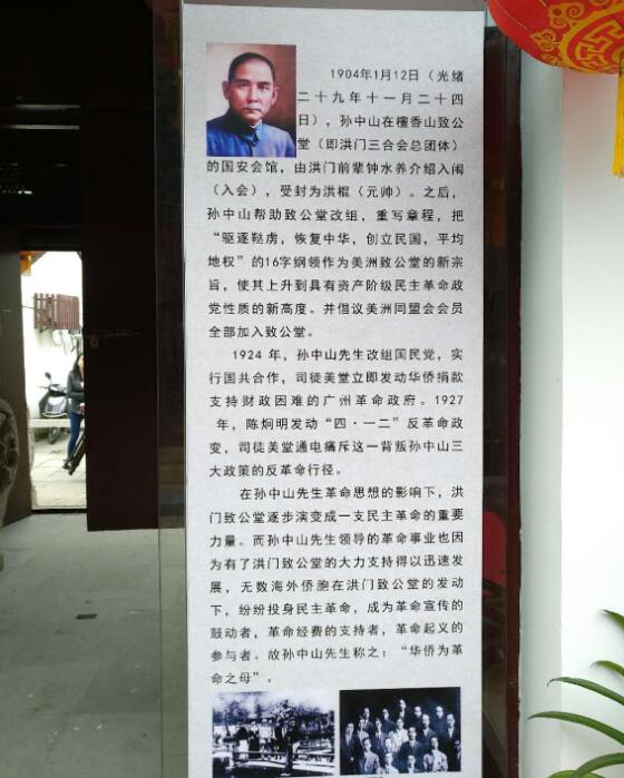 1904年1月12日,孙中山在檀香山致公堂加入洪门,被尊为元帅。之后,孙中山帮助致公堂改组,重写章程,把“驱逐鞑虏,恢复中华,创立民国,平均地权”的 16 字纲领作为美洲致公堂的新宗旨,使其上升到具有资产阶级民主革命政党性质的新高度,并倡议美洲同盟会会员全部加入致公堂。