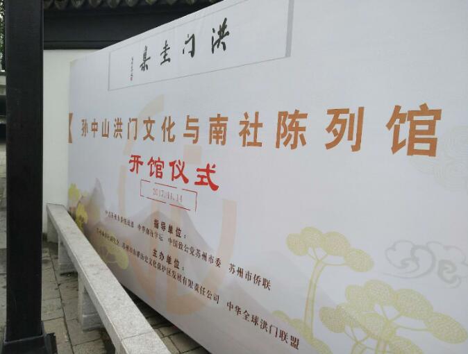 孙中山洪门文化与南社陈列馆是在中共苏州市委统战部的指导下,由中华南社学坛与全球洪门联盟、苏州市南社研究会、致公党苏州市委、苏州市侨联共同筹建的洪门文化陈列馆,馆址位于苏州市山塘街603号(贝家花园)。