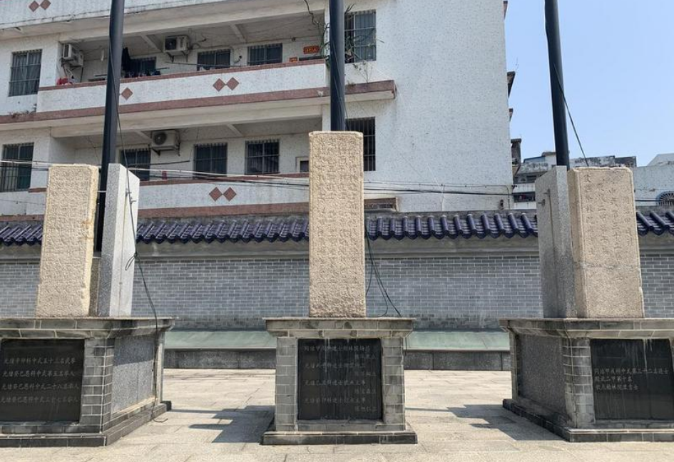 在五大祠之间,建有名为“聚贤坊”的小广场,其中有一石碑刻有“外海明清两朝科举功名概览表”,列举着百余名明清两代获得文武两科举人、进士的外海先贤。聚贤坊周边陈列着刻有历代科举功名的“旗杆石”。记者注意到,其中列举的先贤大都是陈氏族人。
