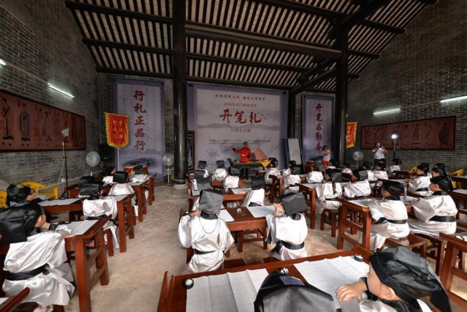 外海文风流传至今。2015年,五大祠内举行开笔礼 马均贺供图