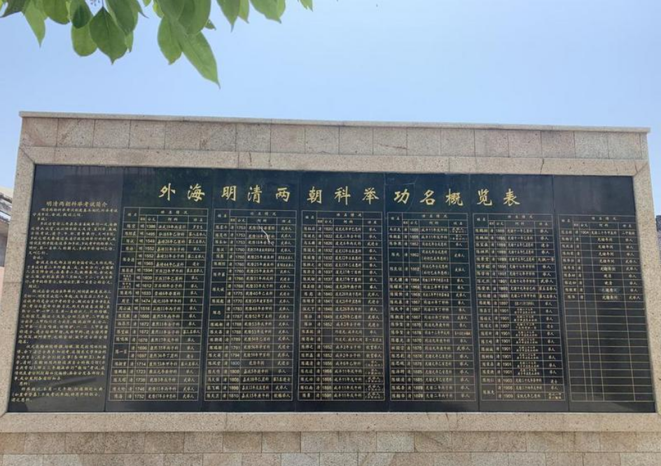 聚贤坊内的外海明清两朝科举功名概览表,其中多为陈氏子弟