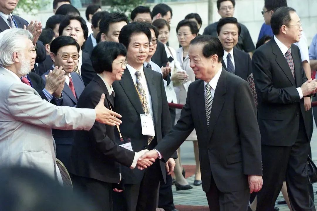▲时任国务院副总理钱其琛看望出席首届世界华文传媒论坛的代表