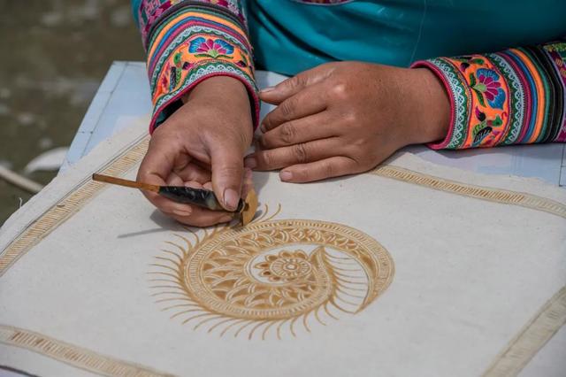 黔东南州榕江县塔石乡乌吉苗寨村民在制作蜡画。新华社发(宋朝晖 摄)