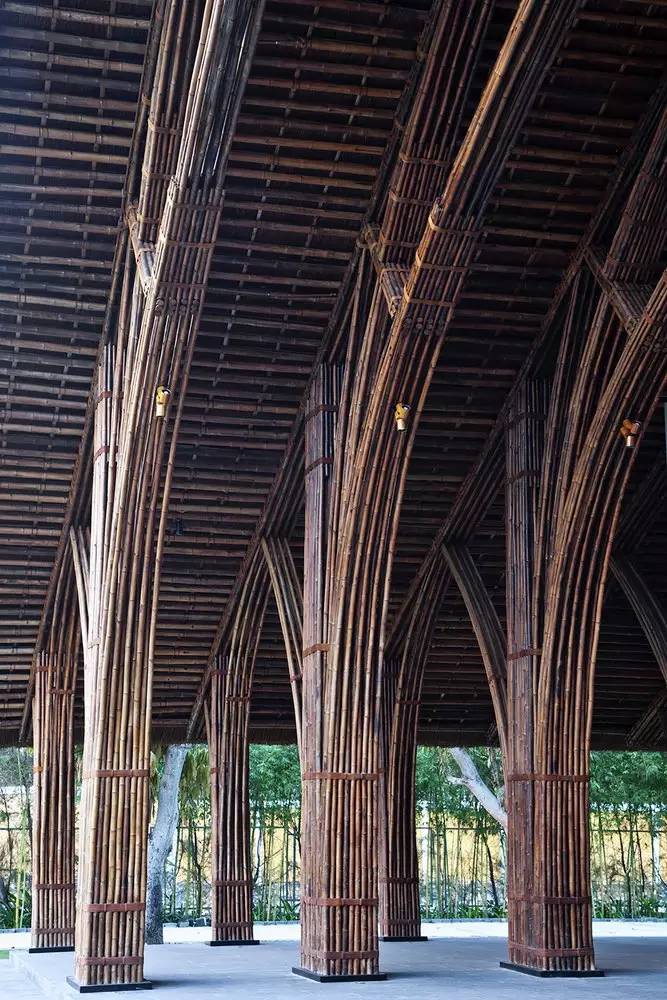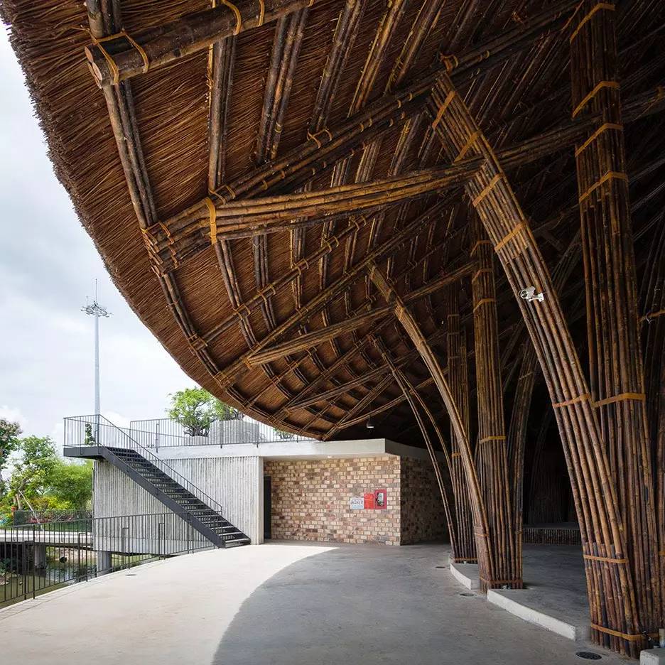竹子在越南随处可见,作为一种新的建筑元素,它具有成本低、建造快、易运输的优点。“廉价的建筑也可以是美丽的”,Vo Trong Nghia表示,“这些以天然材料建造的建筑,在未来若需要拆除或改建时,对环境造成的伤害将是。”