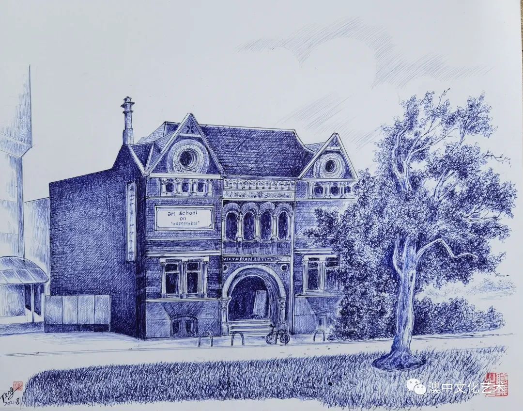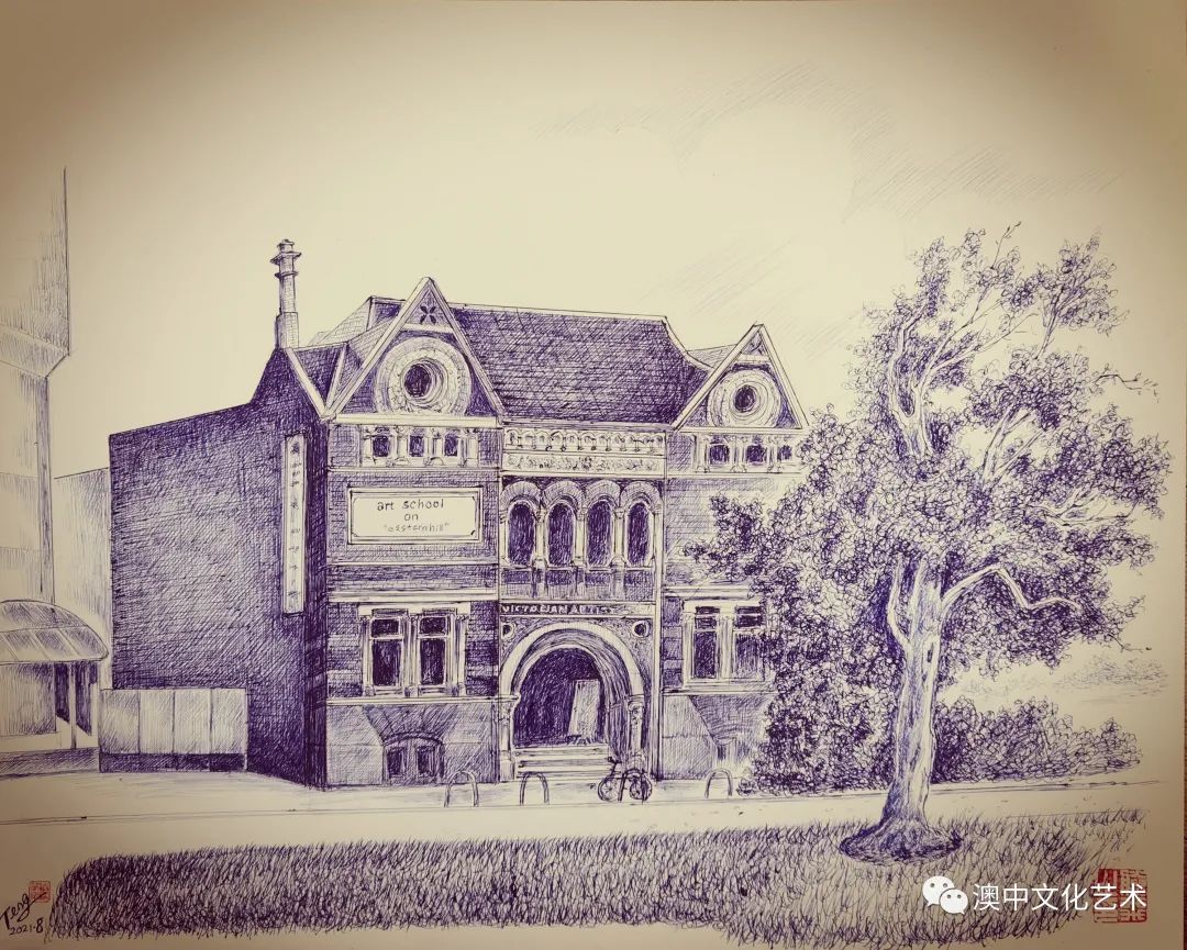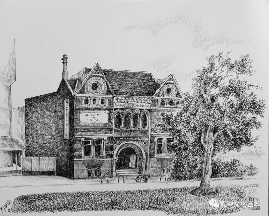 有友表示欣赏建筑画,那就再画建筑吧。过去已经画过不少墨尔本的建筑,不久前又重复画了墨尔本的教堂。这次就画以前想画却一直未画的“澳洲维多利亚艺术家协会会所“吧。