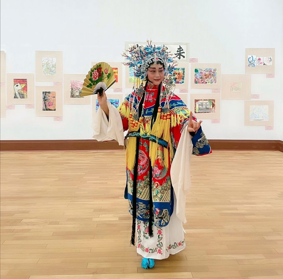 开幕式上大阪京剧团梅派演员孙莉演唱了“贵妃醉酒”,当身穿华丽服装的“杨贵妃”出现在会场时,全场顿时爆发出热烈掌声和惊叹声!在优美的京剧“四平调”乐曲声中,“杨贵妃”款款起步,翩翩起舞,闭月羞花,沉鱼落雁,悠扬奔放的唱腔,再现大唐宫廷故事,韵味十足,令人神往。舞姿、曲调,惟妙惟肖地表达了杨贵妃遵奉唐明皇之旨令、满心欢喜来到百花庭、准备与唐明皇对饮的愉悦心情。妙曲一终,会场爆发出阵阵热烈的掌声。