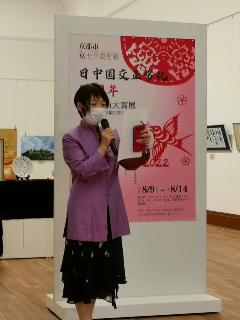 京都市日中友好协会会長 、大津市日中友好协会会 長先后在开幕式上致辞,畅谈50年来中日友好的历史,共同祝贺美術大赏展隆重开幕。