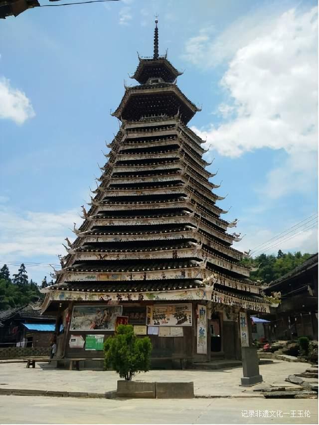 增冲鼓楼是中国目前现存的历史最为悠久的侗族鼓楼,建于康熙十一年(公元1672),以其优美的造型、严谨的结构,被誉为“民族建筑的瑰宝”。矗立于寨中的增冲鼓楼,占地109平方米,通高21.5米,一层平面呈正八边形,为穿斗式十三层密檐双层楼冠八角攒尖顶,杉木结构宝塔形建筑。枋穿斗连,不用一钉一铆,檐口雕龙画凤,塑鱼龙花卉,飞禽走兽。1981年,贵州省人民政府公布为贵州省文物保护单位;1988年,国务院公布为全国重点文物保护单位。作为民族民间建筑文化符号的增冲鼓楼,是中国优秀的传统建筑艺术之一。史载,侗族地区明代就建有鼓楼。