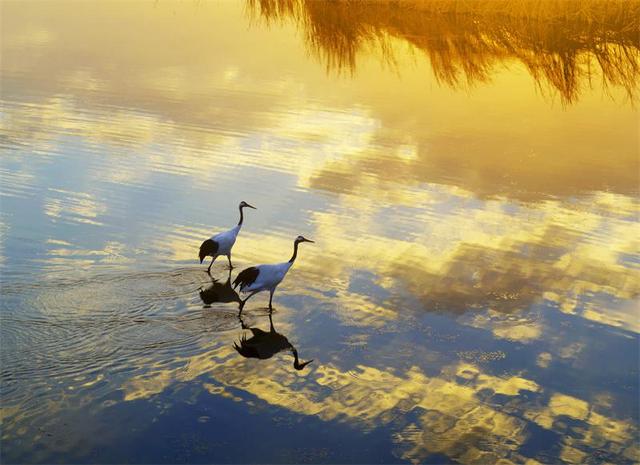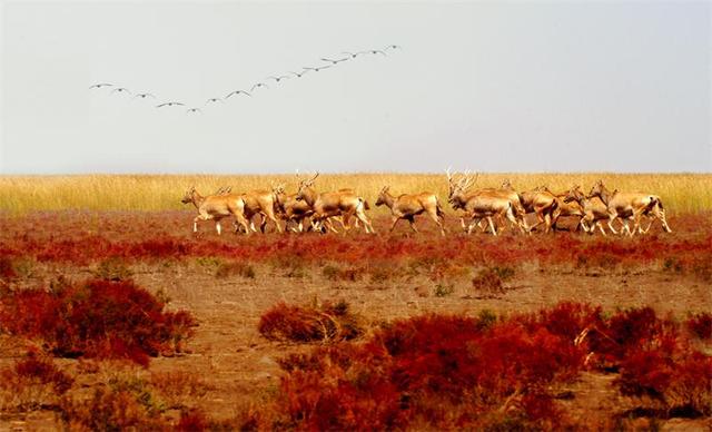 这是一块神奇的息壤,苇绿如玉,蒿红似火,仙鹤展翅,万鸟翔集 ……
