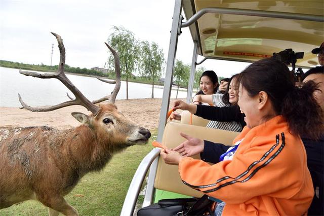 " 看,麋鹿走过来了。" 在大丰麋鹿保护区半野生区,大家也有幸近距离地给麋鹿喂了萝卜。" 麋鹿每年五六月份要进行‘鹿王争霸’,只有胜利的鹿王才能拥有‘佳丽三千’。不过坐拥‘王国’,也不意味高枕无忧,此时也有内忧外患,不仅要好好管理‘后宫’,还要防止其他雄鹿对王位的‘觊觎’ ……" 伴着讲解员的讲解,大家投喂的不亦乐乎。