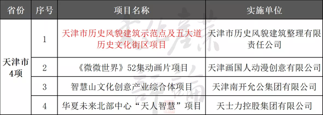 5.强化文化和旅游双向融合。从多地入选的文化和旅游项目看,打造具有地域特色和民族风情的特色小镇、文化街区等地方文化和旅游品牌,成为文旅融合的最大亮点。例如,天津市历史风貌建筑示范点及五大道历史文化街区项目;鄂伦春风情度假村项目等等。