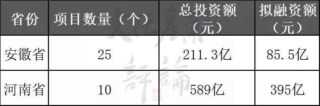 文化产业评论在收集梳理时发现,在全国31个省(区、市)和新疆生产建设兵团中,已经有两个省发布了此次入选项目总投资额和拟融资需求。其中,安徽省黄山书画小镇等25个项目入选,总投资211.3亿元,拟融资85.5亿元;河南省隋唐洛阳城国家考古遗址公园(隋唐洛阳城国家历史文化公园)等10个项目入选,总投资589亿元,拟融资395亿元。