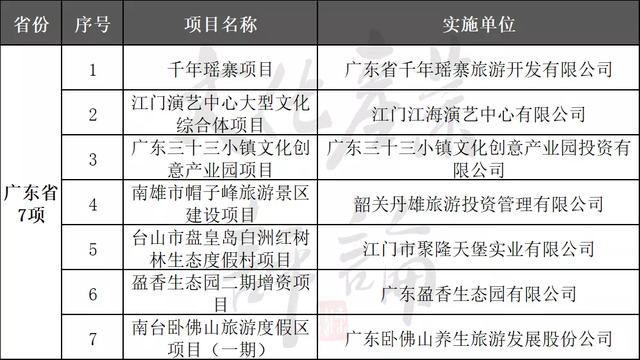 细心的读者可能会发现,在此次文旅部与6家金融机构联合遴选出的全国230个文旅项目,各地入选的项目实施主体均为本地区市级以下国营或民营文旅公司。这个特点也是本次投融资项目的最大亮点。如广东省入选的7个项目,实施单位均为对应的管理主体或运营公司(见下表)。