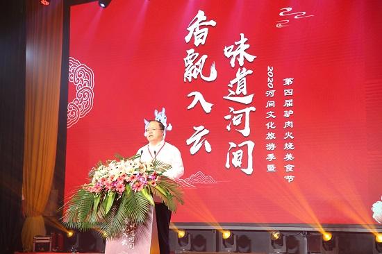 做大做强特色产业,合力擦亮城市名片。开幕式上,河间市委书记尹卫江在致欢迎词中表示,河间以贯彻落实河北省“开启旅游新时代”精神为契机,着眼“全景河间、全域旅游”,着力建设“味道河间、文化河间、气质河间、魅力河间”,全面打造京津冀城市群体验型文化休闲名城。在河间文化旅游业发展的过程中,以“河间驴肉火烧”为代表的餐饮业也发挥了重要的推动作用。当前,我市正进一步做大做强河间驴肉火烧特色产业,传承和发扬传统美食文化,并通过举办驴肉火烧节、借助网络营销平台,不断提升河间驴肉火烧品牌的知名度、美誉度、影响力,进一步擦亮“中国驴肉火烧之乡”这张名片。尹卫江表示,河间已成功举办了三届“中国·河间驴肉火烧旅游文化节”,不仅进一步展示河间驴肉火烧品牌形象,带动了河间驴肉火烧产业的迅猛发展,同时加快了河间旅游文化的发展,对于提升河间的知名度和美誉度具有很强的促进作用。以“香飘入云·味道河间”为主题的第四届驴肉火烧美食节,将开启河间首届“云上美食文化生态融合盛典”,以线上展会新形态,打造创新的“云推介”,发挥河间美食文化节的品牌效应,扩大河间驴肉火烧美食文化的影响,塑造河间美食之城的良好形象,携手共同推动河间实现高质量发展。