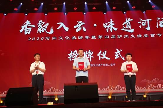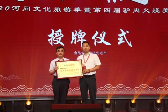 颁授“河间市驴肉火烧产业培育基地”