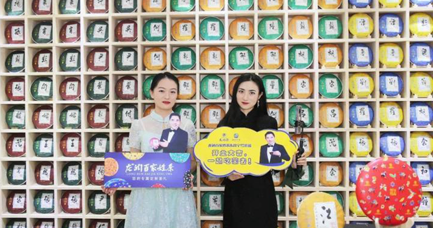 庆典上,龙润茶官方抖音携手抖音达人小咪渣共同直播开业盛况,在直播间邀网友“云品”好茶,带网友选购茶礼!此外,开业当天现场火爆,宾客络绎不绝,到店免费品好茶,参与优惠活动、惊喜抽奖环节。开业期间,卖的最火爆的产品便是著名表演艺术家陈宝国强烈推荐的中国茶礼——龙润百家姓茶!昆明美女、帅哥网红齐聚店内,在火爆央视的龙润百家姓茶墙前打卡合影,拍抖音、发视频、录直播!开业的火爆视频在抖音、朋友圈、微博等社交媒体上不断刷屏。其实,龙润百家姓茶墙早就成为了全国各地龙润茶门店的标志,吸引来往的过客驻足