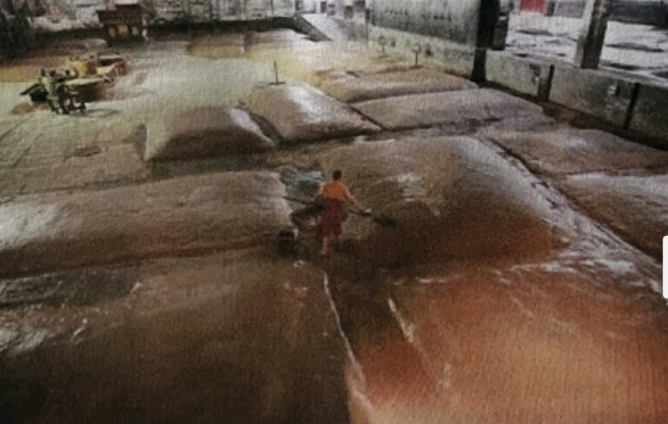 滴窖时勤舀,每窖舀5~6次,从开始滴窖到起完母糟,全部在12h以上完成。滴窖后的酒醅,含水量控制在60%左右。滴窖之目的在于防止母糟酸度过高,酒醅含水太多,造成稻壳用量过大影响酒质。