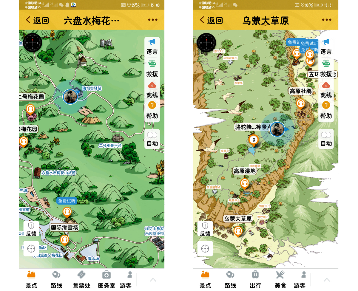 (贵州六盘水市智慧导览系统截图,来源:驴迹VR)