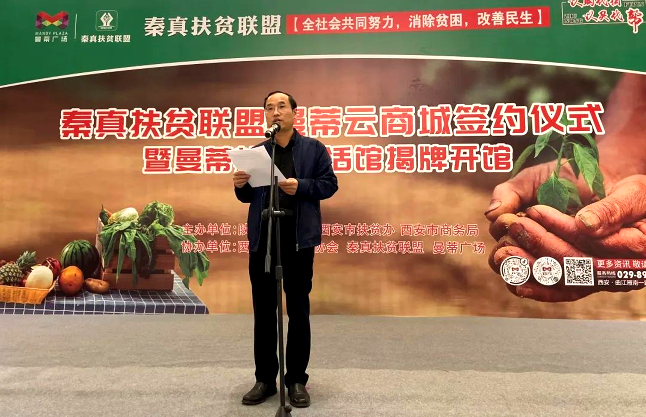 中国记录通讯社(记者 祖琳 王玉伦 )西安消息 9月30日,秦真扶贫联盟曼蒂扶贫生活馆揭牌仪式在曼蒂广场举办。西安市商务局副局长陈建锋、西安市扶贫办副主任李英杰、陕西省商务厅二级调研员高泽、西安市商务局组织人事处处长李军、西安连锁经营协会秘书长 秦真扶贫联盟秘书长杨俊峰、陕西省连锁经营协会(筹)秘书处负责人陈树伟、陕西曼蒂商业运营管理有限公司总经理程薇,以及国美电器西北大区行政总监李方方、每一天直选总经理高珊、陕西紫杰商贸有限公司总经理李爱侠等扶贫联盟行业代表及新闻媒体共50余人见证了此次的揭牌仪式。鹮宝实业带着扶贫产品来参加主力扶贫超市的展开!