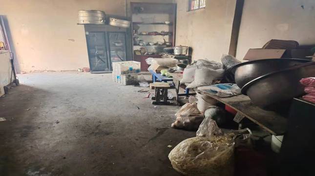 穿过餐厅,来到学校后厨。厨房里面烟雾缭绕有点辣眼,发现刚刚烧火做饭后产生的浓烟还未散去,夹杂着一股说不出的味道一直在房间里飘。刚走进厨房,以为进了农家伙房似的,烧火用的玉米芯、木材等堆满了灶台处,两眼地锅里冒着烟,墙壁被烟熏的黑乎乎的,这一幕和现代的学校有点格格不入。现代学校做饭竟然还是在用人工烧火?别说国家在国家环保严格治理态势下,就是不考虑环保,一所几百人的学校也不可能使用最原始的地锅做饭啊!据估计,使用地锅烧火给学生做饭的,周口全市应仅此一家。学校厨房要求使用电和液化气,用以达到环保要求和卫生整洁。难不成这所学校不在太康县教体局管辖范围之内?如果是在业务管辖范围内,上至太康县教体局,下至朱口镇中心校,难道就没有对这所学校餐厅查验过?或者说就从来没有领导踏足过。如果检查过,这样的餐厅后厨能达标吗?按照规定,未能达标的学校餐厅,是不能发放每生每期400元的营养餐费给学校的。
