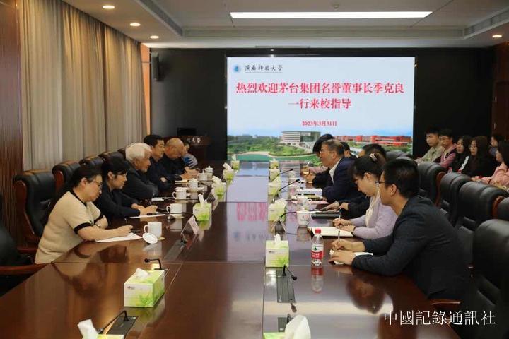为积极推进《陕西科技大学-贵州茅台酒厂(集团)战略合作框架协议》,3月31日,茅台集团名誉董事长季克良,陕西科技大学校友、茅台集团有限责任公司副总经理、总工程师王莉(食品90级),原副总经理、总工程师吕云怀等茅台集团领导,原陕西西凤酒股份有限公司副董事长、总经理贾智勇一行应邀来校座谈交流。校长李志健出席座谈会并讲话。陕西科技大学党委副书记王道安出席座谈会。