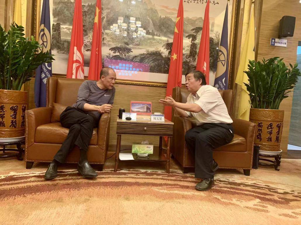 上图是金创会何五星会长与香港胜记仓集团局主席郭泰诚(中国侨商联合会常务副会长)亲切交谈