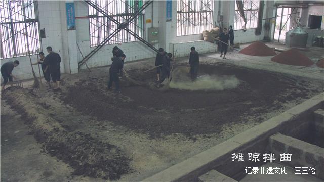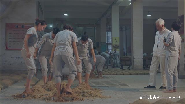 季克良:“这些代谢产物里头,淀粉变成了糖,蛋白质变成了氨基酸。一方面使得曲块慢慢有黄粑味,另外一方面使曲块由于梅拉德反应,切块的颜色在逐渐变黄、变黑,所以曲块要一块一块地放好,其目的是为了培养微生物,让微生物生长繁殖,同时又让微生物能够代谢产物,使曲块有酱香,香味更浓更好。”