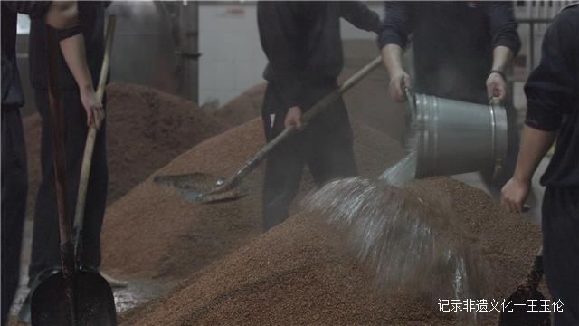 和制曲车间均为巾帼女工恰好相反,制酒车间多为须眉男儿,这是茅台酒生产线上一大有趣景观。以女子的阴柔之力踩制曲块,有助酒曲弹性饱满发酵充足;用男子的阳刚之躯人工搅拌,使得高粱酒粮与小麦曲粉充分混合,保证最大的出酒量。这样的性别劳动分工制度,在酱酒的酿造生产中已持续千年,体现着劳动者的生产智慧。