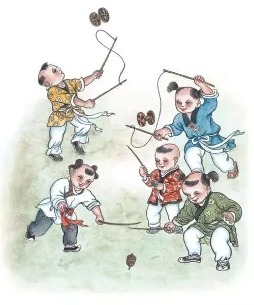 二人三足一条心抖空竹