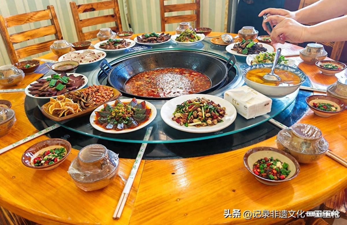 蒲氏刨汤腊肉的起源可以追溯到古老的乡村社区。在过去的年代,村民们为了庆祝丰收或节日,会把家中的猪肉、猪血、猪肝、猪心、肥肠、蔬菜等食材煮成一大锅丰盛的汤。大家围在锅旁,用木勺将热汤舀到碗中享用,欢声笑语,热闹非凡。久而久之,这种庆祝方式演变成了当地的一种习俗,也就是我们现在所说的“蒲氏刨汤腊肉”市级“传统技艺类”非物质文化遗产代表性名录。