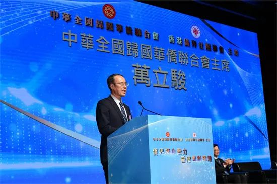 李家超说,在国家推动全球发展开放合作的历史机遇下,香港发挥所长,结合港人拼搏进取、灵活变通的精神,就是让香港再创辉煌的金钥匙。香港文化中西荟萃,人口自由流动,我们背靠祖国、联通世界的一个优势,就在于得到侨界团体背后庞大的华侨网络支持。要做好这方面的工作,离不开侨界团体的力量。中国侨联一直服务广大侨胞,担当各地华侨的沟通桥梁,积极拓展海内外侨务。广大侨胞是建设国家、建设香港的重要力量,相信通过“以侨为桥”,充分发挥香港融通中外的优势,必定可以在世界各地推广中华文化,传播好中国声音。他期望广大侨胞继续与特区政府衷诚合作,集各界侨胞之力,协助香港再创辉煌,为中华民族伟大复兴贡献力量。万立骏在致辞中代表中国侨联,对大会的召开表示热烈祝贺,向香港广大侨界朋友们致以诚挚问候。他说,习近平主席一直心系香港。在香港回归祖国25周年之际,习主席亲临视察并发表重要讲话,明确宣示中央长期坚持“一国两制”的坚定决心,深刻阐述“一国两制”的重大理论和实践问题,为香港发展指明了方向。新一届特区政府守正创新,展现出“爱国者治港”新气象。在祖国大力支持下,香港在“一国两制”正确轨道上稳步前进,东方之珠焕发出新的璀璨风采。