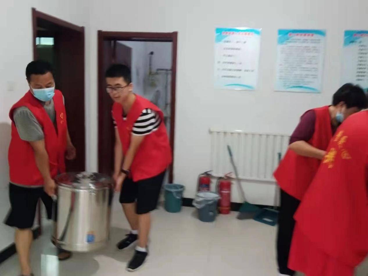 【现场花絮】3.年轻的志愿者高一学生邓博瀚渐渐熟悉了工作流程,来到粥屋后,就开始和志愿者冯金凤、朱小花、程海荣一起削土豆皮。粥装桶时,又和张增军、程海荣往车上搬粥桶。
