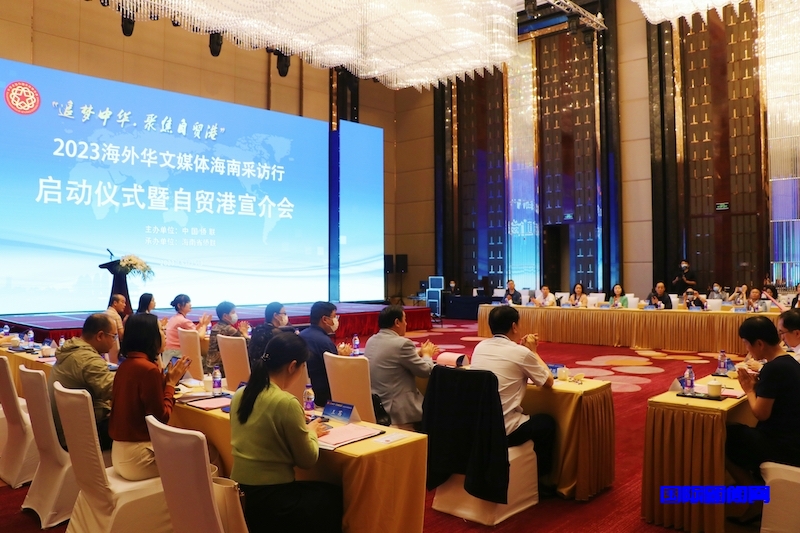 “追梦中华·聚焦自贸港”2023海外华文媒体海南采访行在海口启动(海南省侨联/摄)