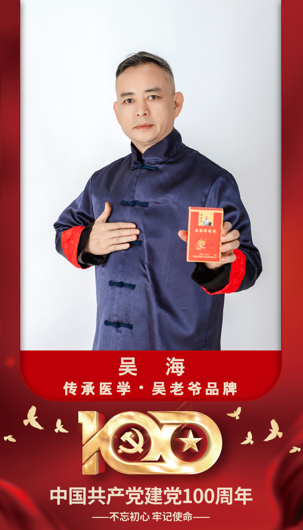 吴海,广西玉林人,出生在一个武术世家、中医世家。他的祖先精通正骨术,代代相传,到吴海这里已是第八代传承。为了更好的弘扬中医,传承祖传秘方,他创办了广西康泉健康产业有限公司,致力于野生中草药的研发、生产和销售。同时,也积极推动中医药文化的宣传,以公益的心态来切入科研、学术和培训等各项中医药发展工作。