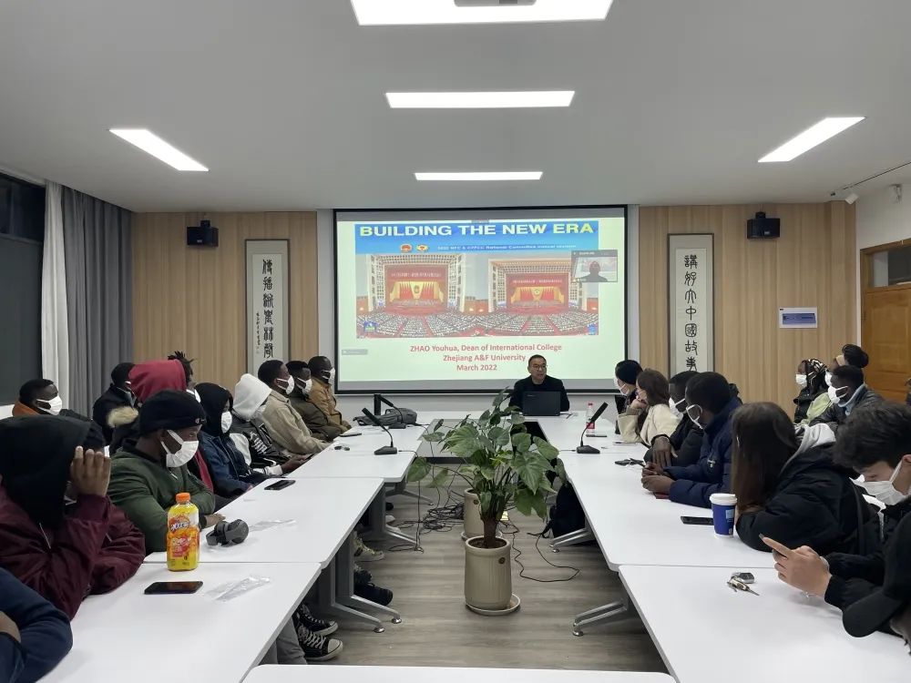 近日,浙江农林大学国际教育学院院长、名师工作室负责人赵有华组织国际生学习2022全国“两会”精神。来自塞尔维亚、俄罗斯、赞比亚、乌克兰、吉尔吉斯斯坦、越南、墨西哥等国的100多位境内外国际生代表采用“线上”或“线下”方式参加了学习会。