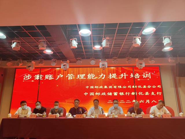 中国记录网6月9日湖南讯(记者 阳家友 通讯员 陈代贵 戴裕玲)6月8日,新化县邮储银行联合邮政分公司在盛世华章大酒店二楼会议室举办反诈涉案帐户专题培训会,全面提升银行全体员工涉案帐户的管控能力。邮政公司、支行相关领导及全体员工参加,会议由邮政储蓄银行新化县支行行长邹焕宇主持,特邀县反诈协调办主任陈鹰到会授课。