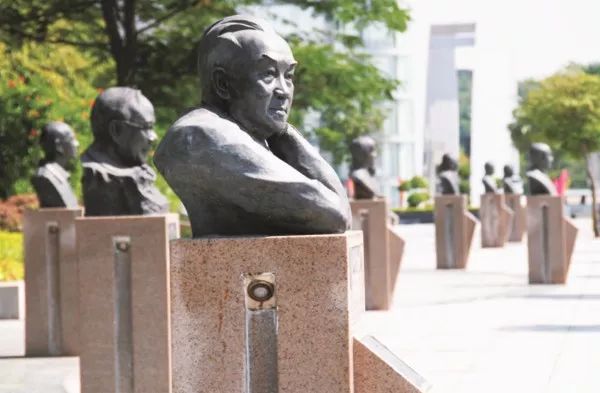 △院士路两旁分别设立江门五邑籍院士艺术塑像。何记 摄邑邑生辉,群星璀璨。明代著名理学家陈白沙、近代维新派代表人物梁启超、著名侨领司徒美堂、国学大师陈垣、中国航空之父冯如,籍贯在江门的中国科学院院士和中国工程院院士有34人。这个数量在国内地级市城市中实为少见。