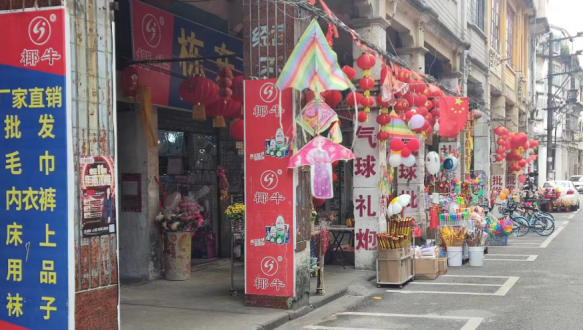 △新市路实景。剧中张译饰演的角色安欣与徐江见面的地方位于长堤片区的新市路。新市路历史上是银行一条街,堪称当时江门的“华尔街”,现在主要销售节庆气球、礼炮等,春节期间年味十足。