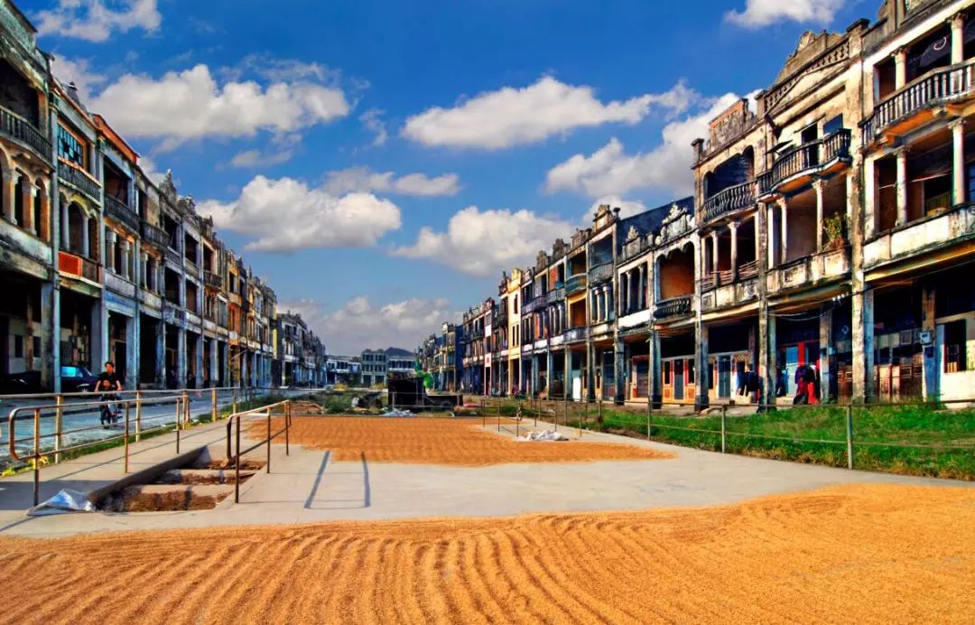 △仁泰酒庄展自身独特的侨乡建筑魅力。陈方欢 摄公益埠于1908年建成,距今已有百余年历史,占地0.33平方公里,按照纽约的城市布局规划建成,坐拥台山最早一批的洋楼建筑,其中以二至三层高的商住合一骑楼式建筑为主。因此,公益埠被称为“纽约街”,也曾被誉为“小广州”。其以9条笔直的骑楼街纵横贯通全埠,整体成“無”字形,组成的建筑类型涵盖商铺、教堂、学校、医院等。在众街道中,数苏杭街、中兴街与中环街尤为有名。05到开平碉楼与村落看中西合璧的侨乡文化丰碑