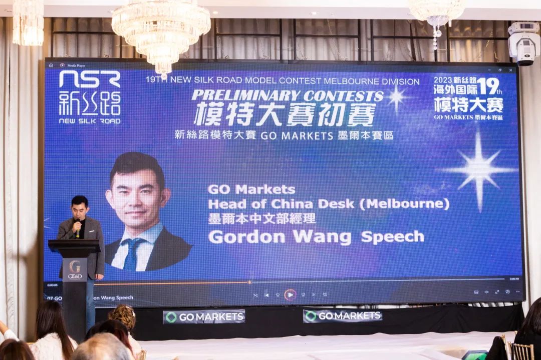 Austin Cheng总经理说,很荣幸获得今年海外新丝路模特大赛在澳大利亚悉尼、墨尔本的总冠名机会,并介绍了GO MARKETS作为老牌金融券商一直以来有着丰富的产品和出色的服务及优厚的行业收费标准。希望大家多多了解和支持GO MARKETS,感谢今天参与的嘉宾和选手,希望选手展现自己的风采、赛出自己的水平取得好成绩。
