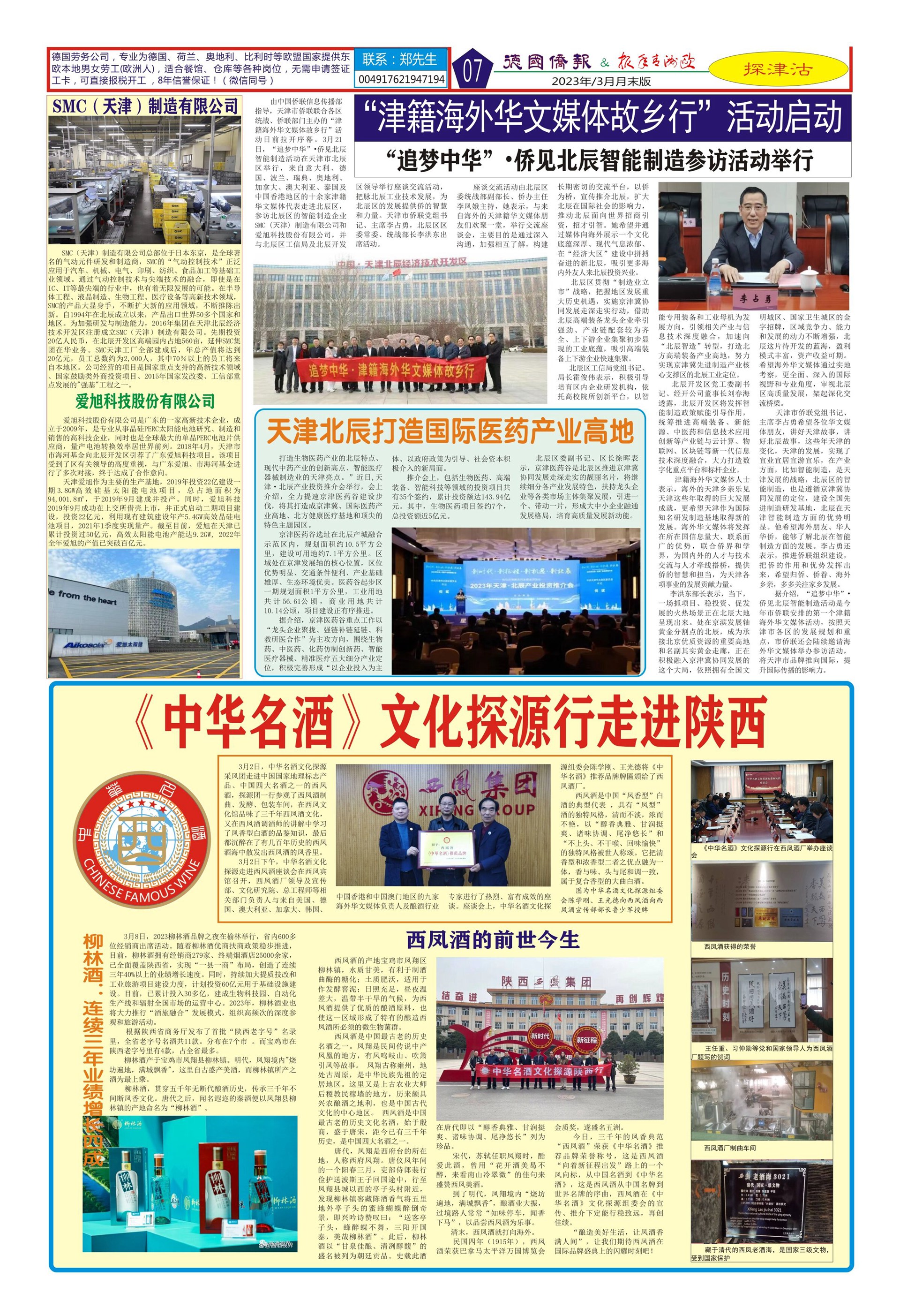 德国侨报2023年3月月末版大篇幅报道《中华名酒》文化探源行走进陕西西凤酒厂,《中华名酒》文化探源陕西行于2023年3月2日探源陕西西凤酒厂。中华名酒文化探源采风团走进中国国家地理标志产品、中国四大名酒之一的西凤酒,探源团一行参观了西凤酒制曲、发酵、包装车间,在西凤文化馆品味了三千年西凤酒文化,又在西凤酒调酒师的讲解中学习了凤香型白酒的品鉴知识,最后都沉醉在了有几百年历史的西凤酒海中散发出的西凤酒的凤香里。