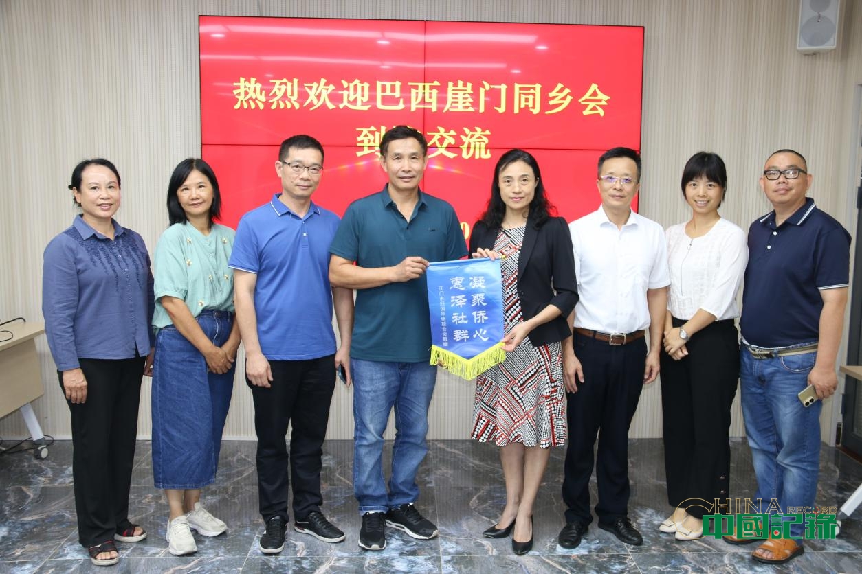 (江门市侨媒中心讯)海外儿女南美归来,聚首侨都共话乡情。今年6月5日,巴西崖门同乡会访问团一行到访江门市侨联,受到广东省侨联副主席、江门市侨联主席林春晖,江门市侨联副主席郑文辉等热烈欢迎和热情接待。海内外乡亲济济一堂共聚乡情。