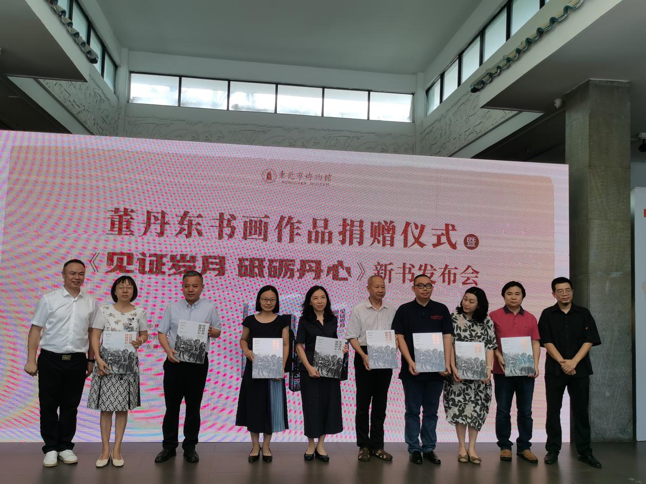 在董丹东书画作品捐赠仪式上,东莞市文广旅体局党组书记、局长司琪致辞,称赞作为德高望重的老一辈革命艺术家,董丹东先生的艺术精品捐赠落户东莞市博物馆,这是东莞市未来建设文化强市的有力促进与推动,是东莞文化艺术界的喜事和盛事。董丹东先生亲属董璆、宋家梁等向东莞市文广旅体局、东莞市博物馆捐赠董丹东生前创作的书画精品代表作《1955年套色木刻迎接南下解放大军版画》。东莞市博物馆向董丹东亲属颁发捐赠证书。