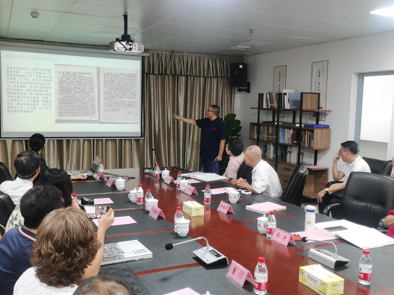 图为董丹东女儿董璆女士(中)与江门专家学者合影
