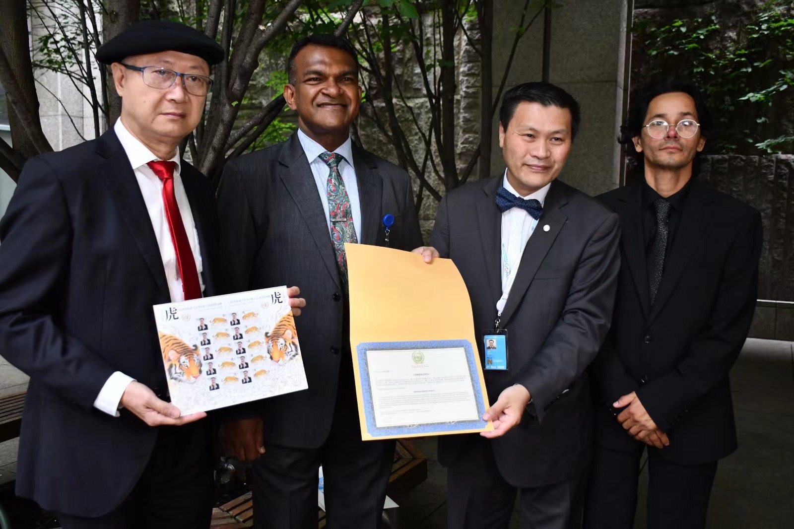 On Thursday, June 16, 2022, Chairman Andy Lin of United Nations Commutech Group hosted a press conference at the United Nations Plaza in Manhattan and formally announced Khenpo Sonam Tshering Yoezer Rinpoche’s United Nations Thangka Arts Exhibition Tour and Cultural Exchange Events which will start in early August 2022 in New York City. Venerable Khenpo Sonam Tshering Yoezer Rinpoche has been specifically trained in Thangka painting in Bhutan. His Thangka paintings have received great appreciations and admiration by many from different ethnic and cultural backgrounds worldwide and have brought auspicious energy to those who came into contact with him or his Thangka paintings. Chairman Andy Lin presented the invitation letter from United Nations Commutech Group to invite Venerable Khenpo Sonam Tshering Yoezer Rinpoche to come to the United States in this August to co-host the United Nations Thangka Arts Exhibition Tour and Cultural Exchanges with United Nations Commutech Group. Several precious Thangka paintings from Venerable Yoezer Rinpoche were displayed at the press conference. The press conference was well attended by distinguished guest Major General Harindra Peiris RWP RSP USP ndu Minister-Military Advisor from Sri Lanka’s Permanent Mission to the United Nations, successful professionals, and friends from all walks of life on this very auspicious day. United Nations Commutech Group has hosted several United Nations Charity Peace Concert this year. A celebration party for the successful completions of these concerts was hosted in conjunction with the press conference in recognition of those who have selflessly contributed to the successes. United Nations FDS First Day Stamp and Community Contribution Award were especially presented to musician Yu Wang for his contributions in promoting love and world peace and cultural exchanges in correspondence to the United Nations 17 Sustainable Development Goals. Chairman Andy Lin also extended his invitation to everyone who would like to join them at the United Nations by sharing ideas, talents and resources for world peace.